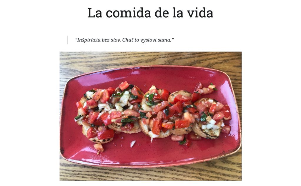 Neodmysliteľná súčasť života, sveta, rána i večera. Kuchyňa domáca i typická pre iné kúty sveta. Zvlášť tá cudzia je dobrá hlavne najmä, kde je doma. Jej napodobenie mimo originálneho sveta je len bezcenný odvar, ktorý nie je hodný viac ako nechutné gesto zdvorilostného prejavu súcitu nehodného ani tretiny ceny na účte.